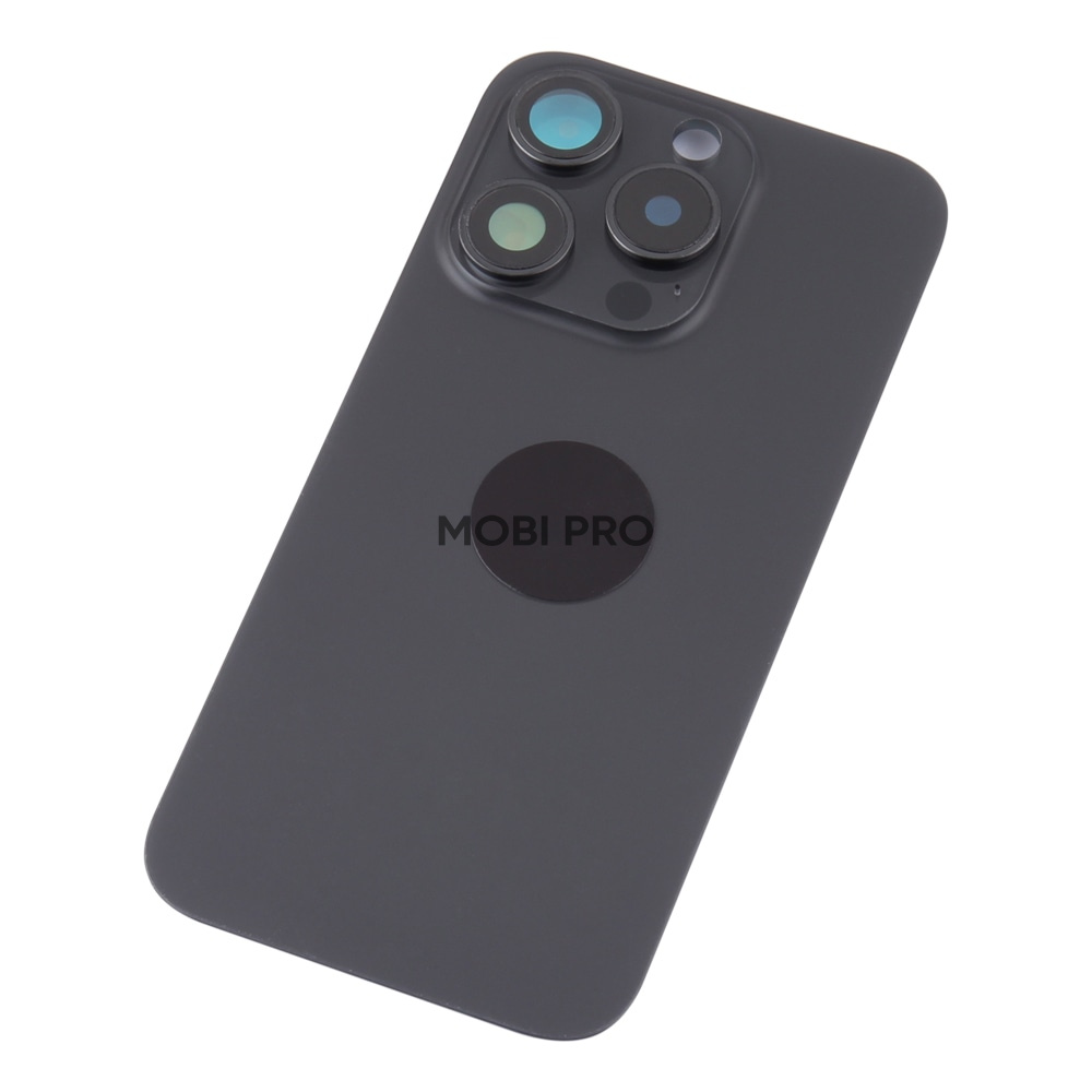 —Задняя крышка для iPhone 15 Pro в сборе со стеклом камеры Черный (стекло, монолит, MagSafe, логотип) - Премиум