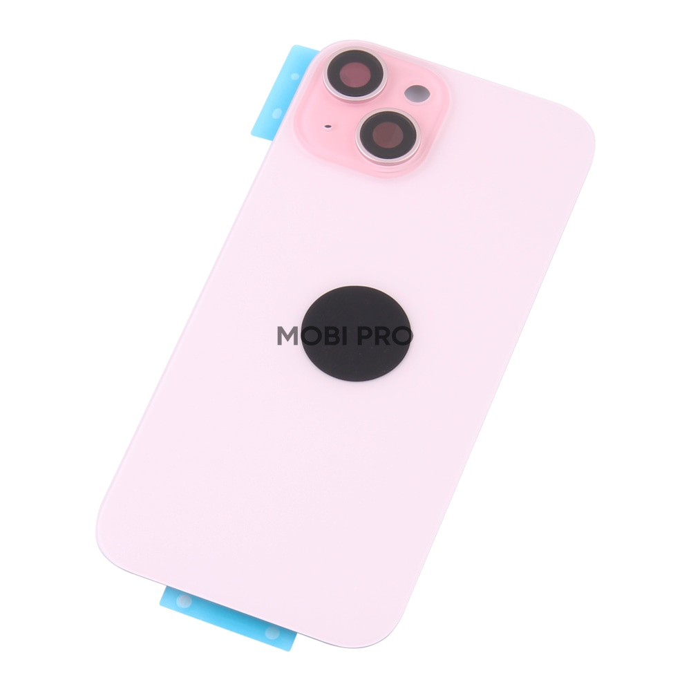 Задняя крышка для iPhone 15 в сборе со стеклом камеры Розовый (стекло, монолит, MagSafe, логотип) - Премиум