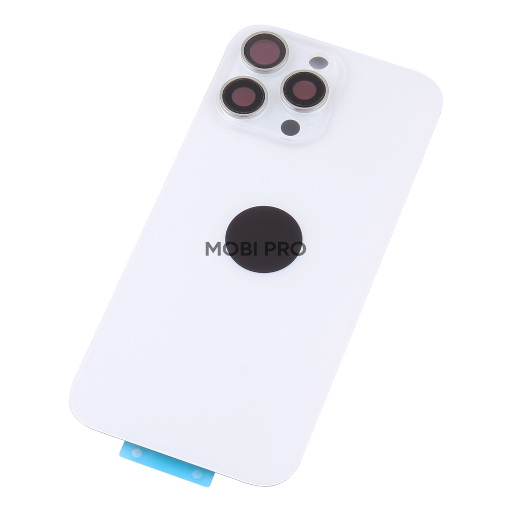 —Задняя крышка для iPhone 16 Pro Max в сборе со стеклом камеры Белый (стекло, монолит, MagSafe, логотип) - Премиум